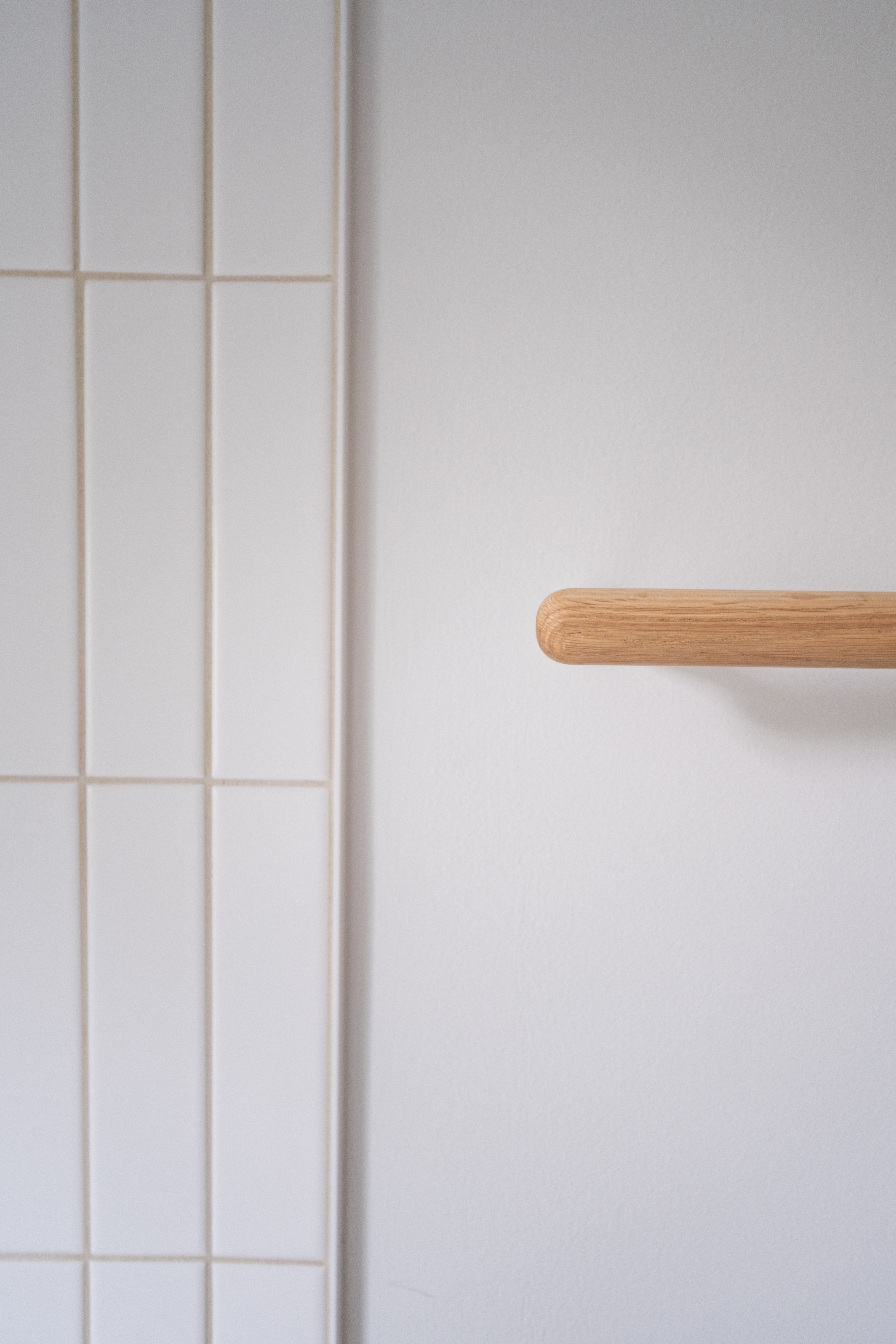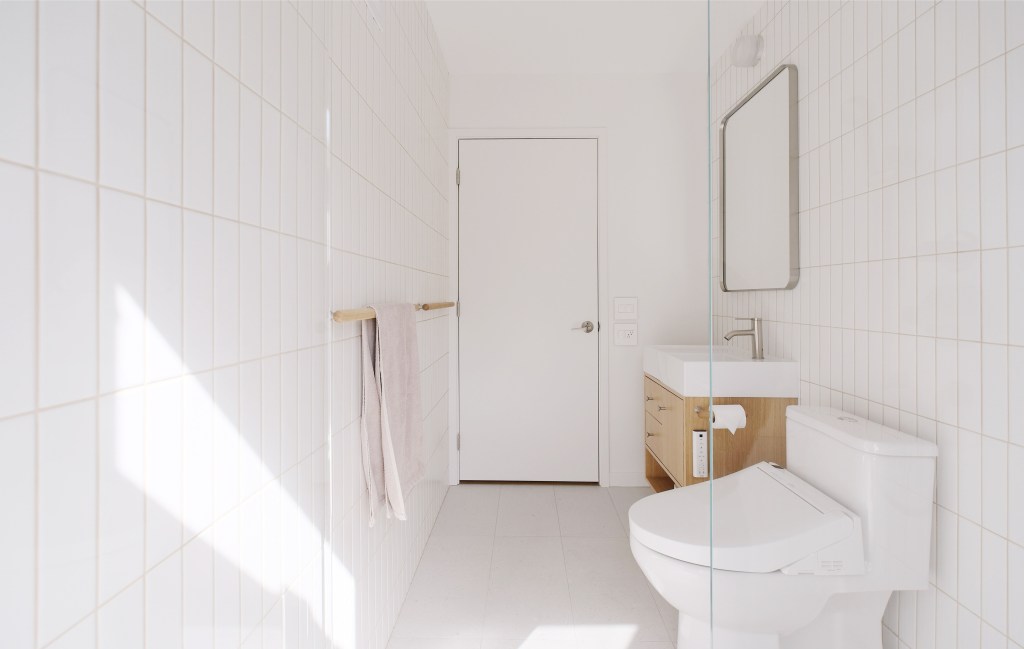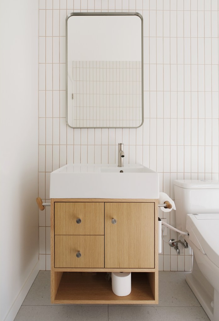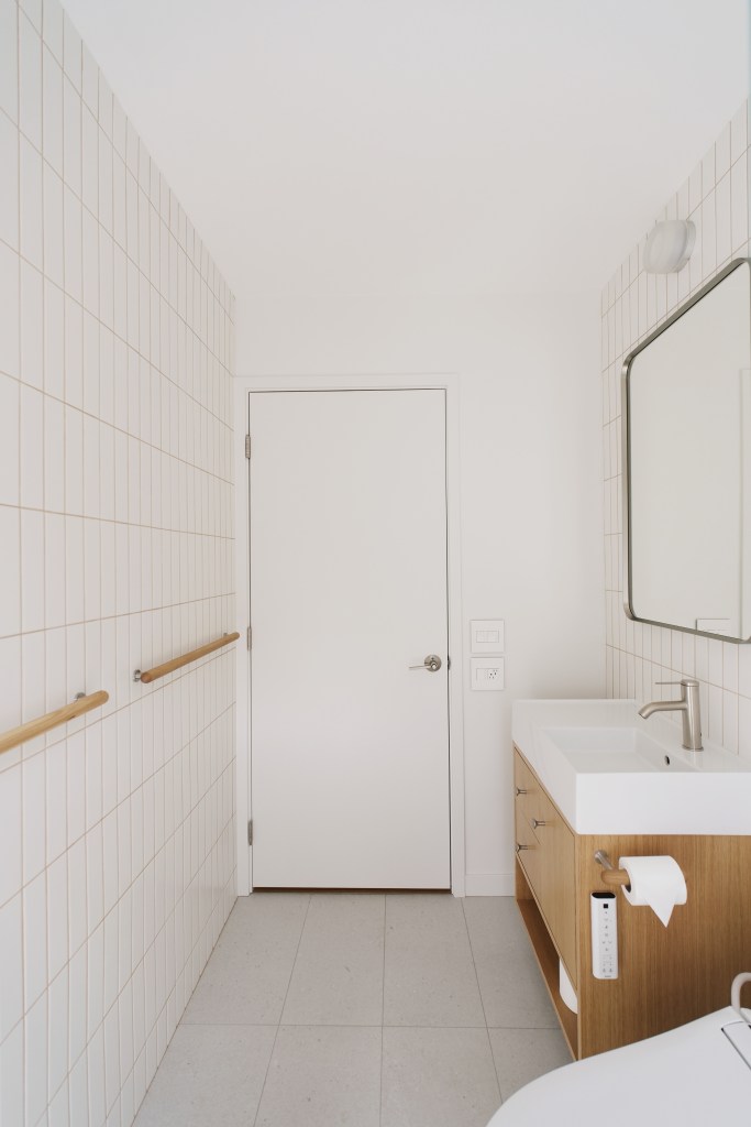 This bathroom has been designed with aging in place and clean-ability in mind.
