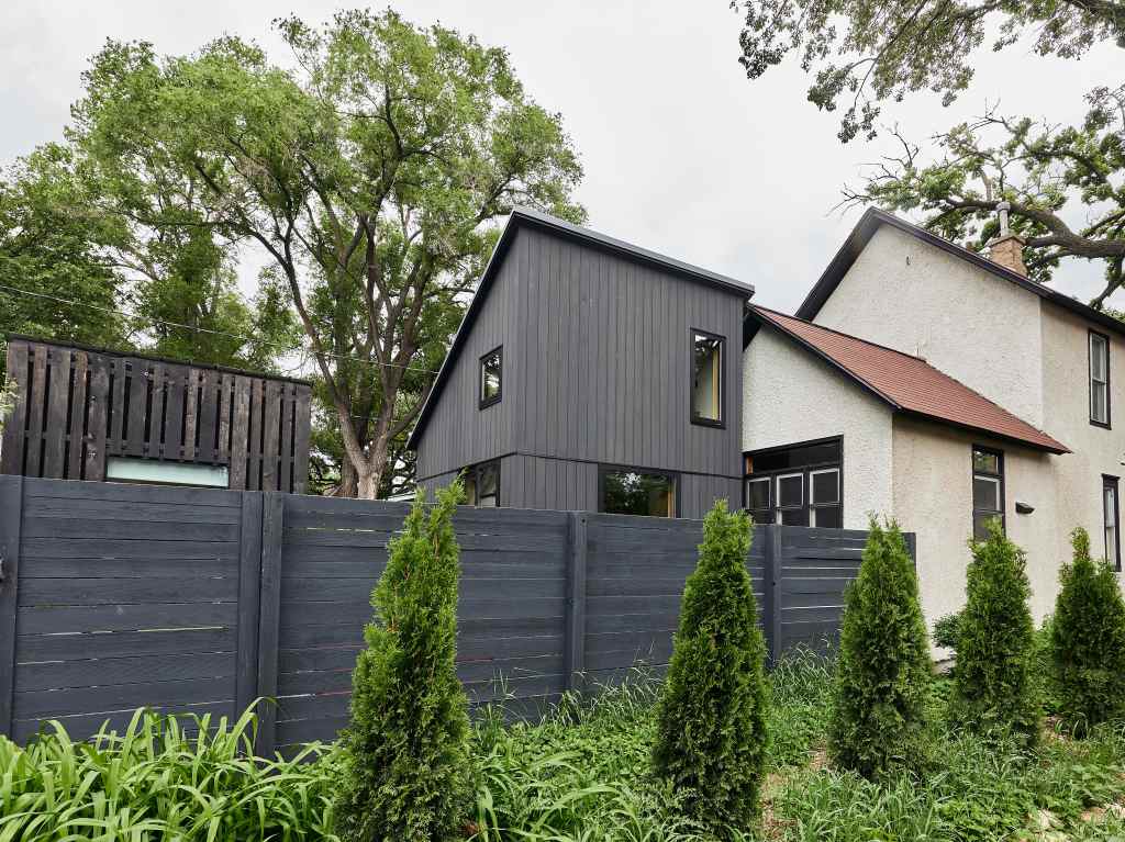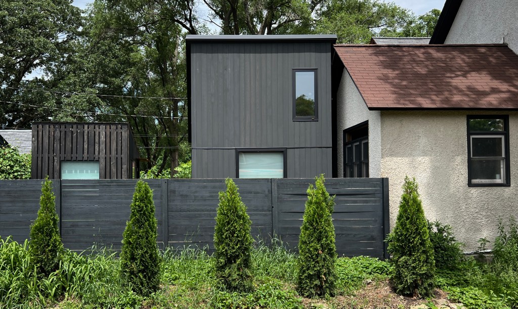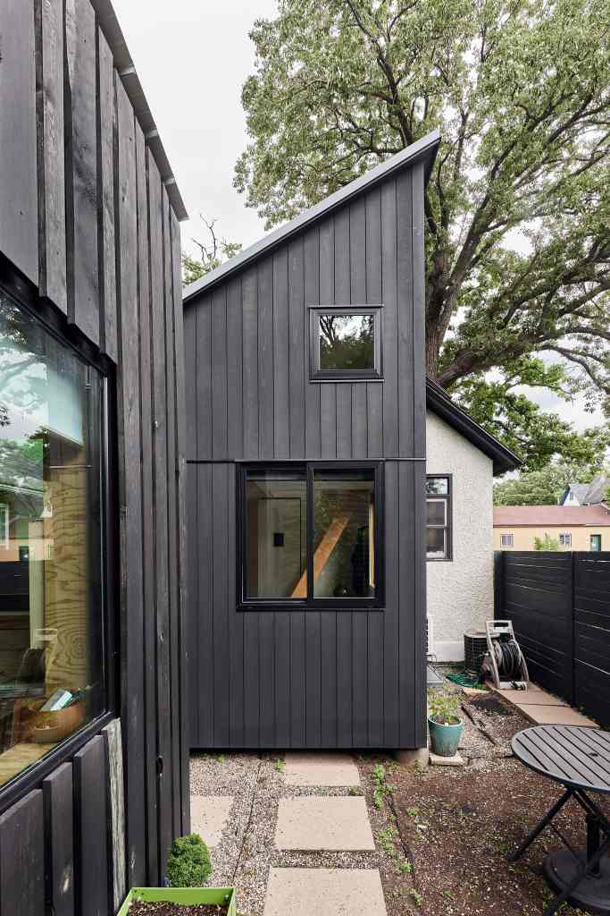 This same client and property is also home to the NE studio, a “Phase 1” that provided an office detached from their main house. The look and feel of this addition took cues from the studio with shed roofs and dark vertical siding.