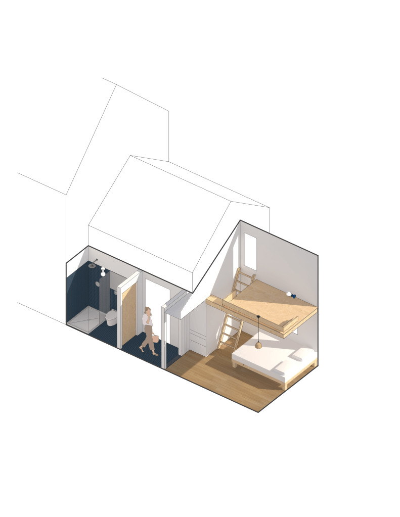 The NE Addition is a combination bedroom loft addition + mudroom conversion to a 3/4 bathroom. Together these renovations create an en-suite unit for a family in love with their neighborhood but outgrowing their home’s footprint.