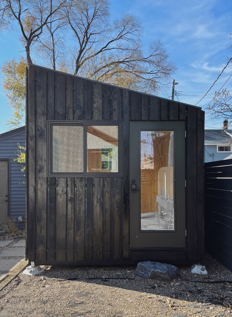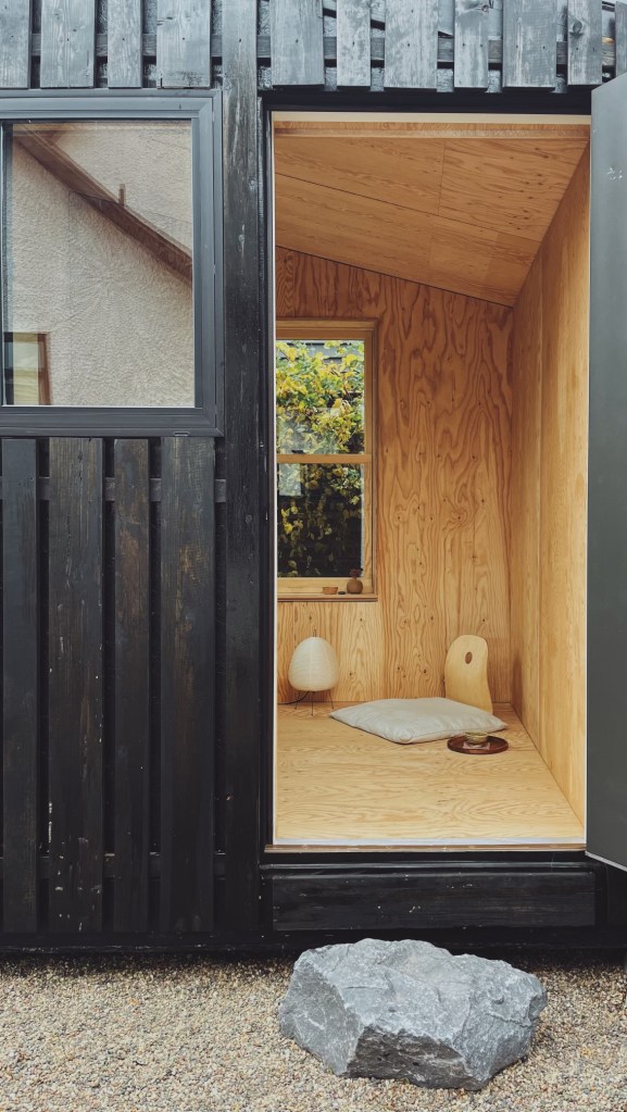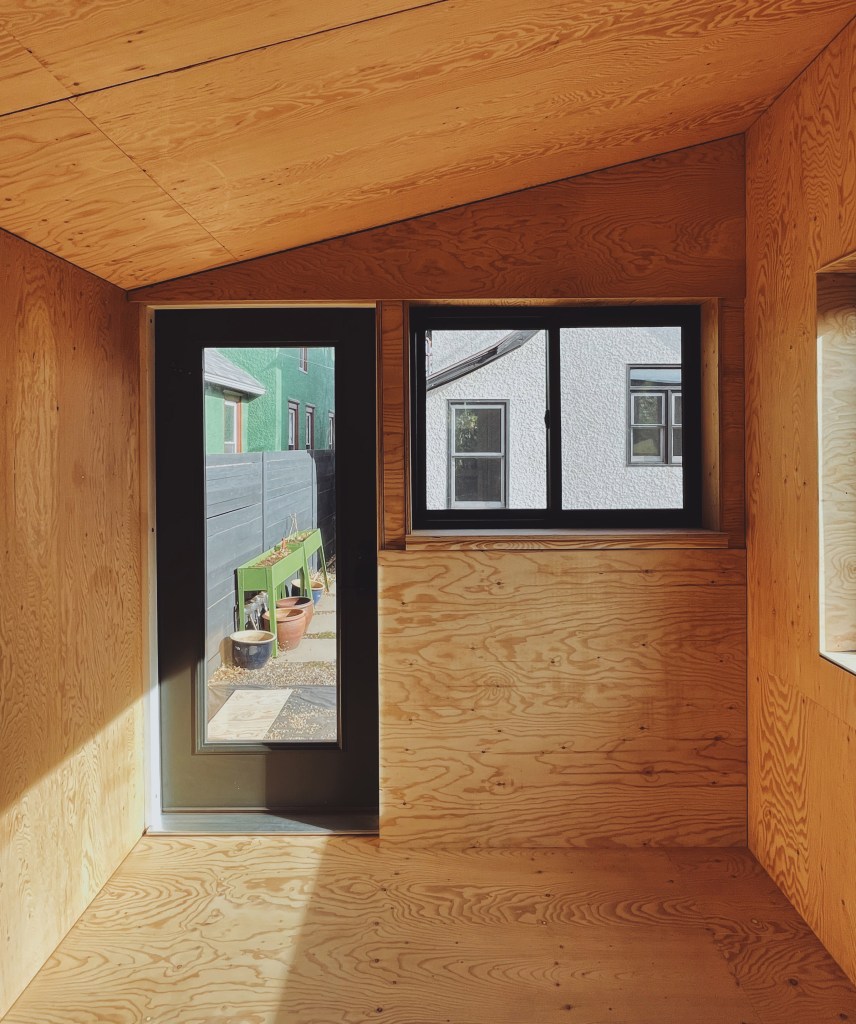 The owner is a poet and writer who lived in Japan for 9 years. As a writer, she had some specific requests: a ton of natural light, warm interiors, a deep window jamb for books, and keepsakes from her travels. She lives with her husband who works nights and her adult son who is on the Autism Spectrum. This studio provides her a secluded space to work peacefully, providing independence for each family members’ specific schedule.